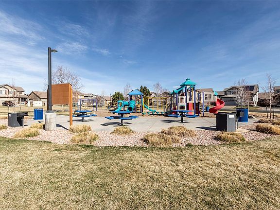 A large 5 bedroom ranch located across for a large green belt and neighborhood park! Pre-inspected! The home is complimented by a fully finished basement, featuring 2 bedrooms, full bath, storage and a large recreation room. The bright master suite contains a 5 piece master bath and a spacious walk in closet. The 2 main floor bedrooms are located in their very own corridor of the home. This open concept floorplan blends the kitchen with an eating area and a spacious family room with a cozy fireplace. Trex decking with new, wood pergola in the fully fenced backyard. Additional features include central vacuum, new A/C unit, upgraded GE kitchen appliances, and cement tile roof. Great location! Quick access to DIA and walking paths to Rocky Mountain Arsenal Open Space!