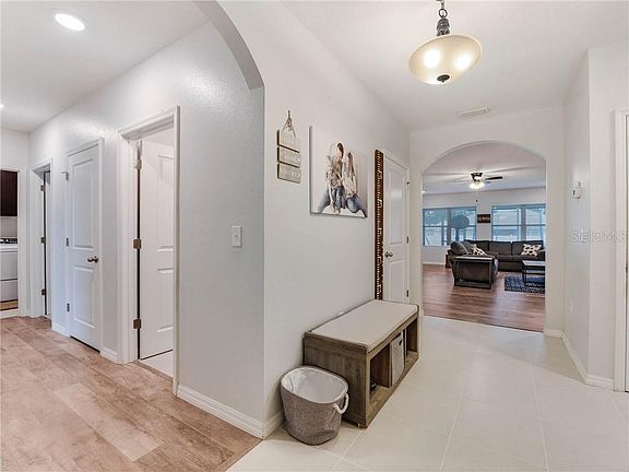 BEAUTIFUL UPGRADED 4/2 home in Peppertree!! Newley built in 2018. FENCED in backyard! Upgraded landscaping! This home has many desired features! As you enter in the home you will notice the HIGH CEILINGS throughout and LARGE TITLE entry! To your left is the guest bathroom updated with SHIPLAP, DOUBLE SINKS AND GRANITE! The three guest bedrooms are oversized and each have a closet. You will also notice the indoor laundry room with added cabinetry and shelving! WASHER AND DRYER INCLUDED! This home features an OPEN FLOOR PLAN! OVERSIZED LIVINGROOM! LAMINATE FLOORING! NEWLY PAINTED! The kitchen has been updated with GRANITE, NEW CABINETS, NEW SINK, NEW LIGHTING, ADDED BACKSPLASH, WALK-IN PANTRY AND TILE FLOORING! The master bedroom features ITS OWN BATHROOM WITH UPDATED SHIPLAP, HIS AND HER CLOSETS, DOUBLE SINKS, WATER CLOSET, STAND UP SHOWER! You can enjoy the outdoors with the large screened in lanai! The backyard is large enough to add a pool! Come see this one today, it is WAITING FOR YOU!!