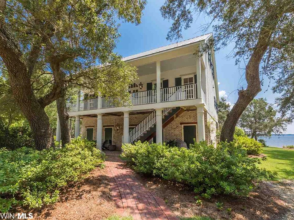 Coastal luxury at it's finest on serene Perdido Bay! Experience the finer side of life as you enter this Louisiana style raised custom cottage with 4,097 sf, 4 bedrooms and 5 baths situated on .7 +/- acres (with additional .7 +/- acre waterfront lot available for purchase separately) overlooking an uninterrupted water view. A private, tree-lined drive slowly winds, opening up to the stunning three story home. The first floor features 11' poured concrete walls, a 28'x40' garage, 16'x40' workshop with separate garage door, a dreamy den with a bay view featuring signature southern brick floors and antique pine beams, a full bath and elevator to the main floor. The main floor is open, airy and inviting. Ten foot ceilings, South American alder hard wood flooring, 8' solid wood doors and custom trim and molding carry throughout this floor and lead to a large formal dining, formal sitting, living area and professional kitchen with magnificent views of the bay. The chef's kitchen is complete with a Wolf gas range, Sub Zero refrigerator and freezer, Miele warming drawer, oven and dishwasher, Tennessee marble tile floors, flowing marble countertops and custom walnut cabinets. The master wing is also on the main floor and boasts a state-of-the-art shower and his/hers spaces. The third floor includes two nicely appointed junior suites with full baths, as well as a sitting area. Underground power, 400 amp electric service with standby generator, spray foam insulation, 3 high efficiency HVAC units with Reme Halo air purification, whole house water purification system with 2 Rinnai tankless water heaters, 4" well and 2 septic systems including a Presby system are just a few components of the property that have been thoughtfully installed and maintained. Positioned for quick and easy access to boating hot spots such as Pirate's Cove, Barber Marina and The Wharf, or jet over to watch the Blue Angels! This private coastal oasis is unlike any other and one you won't want to miss.