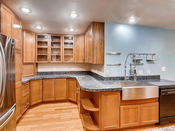 Wonderful ranch-style condo in Hillcrest. Beautifully updated with Bamboo floors throughout the main floor, granite counters in the bathrooms, and a completely updated modern-style kitchen with stainless appliances, beautiful cabinetry, and a farmhouse style sink. Fully finished basement with a wet bar. Washer and dryer included. Enjoy a covered patio and yard as well! A condo that lives like a detached home! Home was updated in 2015. Thornton STEM Launch is 5 blocks from the home.