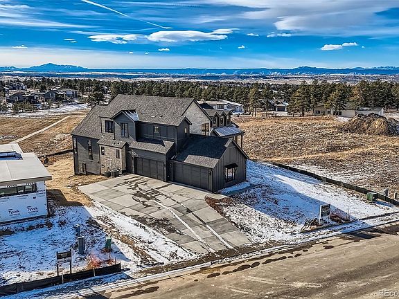 Welcome to 9782 Majestic Oak Drive-a stunning Mountain Modern two-story home in the sought-after Timbers at the Pinery Community. Perched atop one of the marque home sites, this luxurious property offers 6,049 finished square feet of finished living space, plus an additional 995 square feet of unfinished space, perfect for future customization. Key features include: 5 bedrooms, including a main-floor Owner's Suite with vaulted ceiling and spa-like en-suite bath (w/his and hers water closets!); 6 bathrooms (4 full, 2 half); Gourmet kitchen with quartz countertops, soft-close Maple cabinetry, and Thermador appliances with Home Connect technology; Open-concept design with 12-foot ceilings and a 62-inch Vector fireplace in the great room; Main-level office with deck access and mountain views; Covered composite deck with Cool Technology; .52 acre lot with panoramic mountain views!!; State-of-the-art technology: pre-wired surround sound, outdoor speakers, Google-enabled doorbell, and WiFi-enabled garage doors with cameras; Four-car garage with EV charger; Dual-zone HVAC system with four smart thermostats; Architectural shingles and SmartStrand siding for durability and low maintenance; Oversized windows showcasing MASSIVE mountain views; Home gym and two finished storage rooms; Main-level AND upper level laundry rooms. This home seamlessly blends modern comfort with sophisticated design, offering a perfect balance of luxury and practicality. The open layout, high-end finishes, and smart home features create an ideal living space for those who appreciate style and efficiency. With its spacious interiors and stunning outdoor areas, this property is perfect for both everyday living and entertaining. All of this located in the Timbers!...Enjoy miles of trails, acres of open space, access to The Pinery CC-and the occasional visit from our neighborhood deer!  This home has it all! Schedule your private tour today to experience this exceptional home by award winning Joyce Homes!