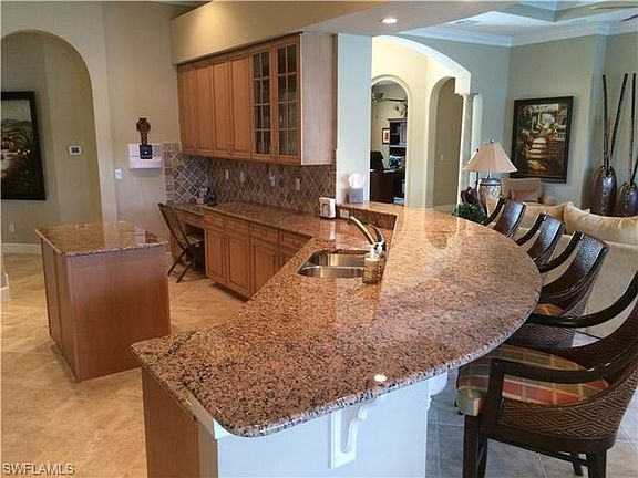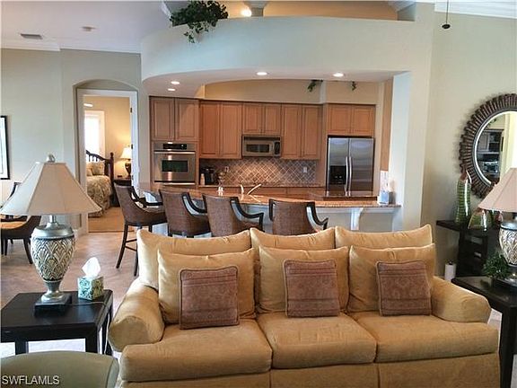 Enjoy luxurious living in this 3,000 sq. ft. furnished/turnkey estate home overlooking golf, water, & preserve views from the oversized Pool/Spa lanai area. Enter thru leaded glass French doors and be amazed by the quality, detail and craftsmanship. Tall ceilings thru-out, large diagonal tile in the main areas. Kitchen has stainless appliances, granite counters, tiled back splash, Center Island and tall wooden cabinets. Master bedroom has private entry to lanai, large walk-in closets. Master bath features shower with "rain forest" styled shower head, Jacuzzi tub. Lanai has an outdoor kitchen with gas grill, sink, frig, ice maker. The 2005 Lexus RX350 & Golf cart come with the home. Wooden floor in Den. All windows are storm impact glass and the home has a "Whole House" Solar System. The Quarry offers world class amenities including a private ½ mile sandy beach on a Stone lake, boat docks, professionally designed golf course, tennis, restaurant and much more. All just minutes away from Naples beaches, dining, & shopping. Your "move-in" estate home is ready & waiting for you.