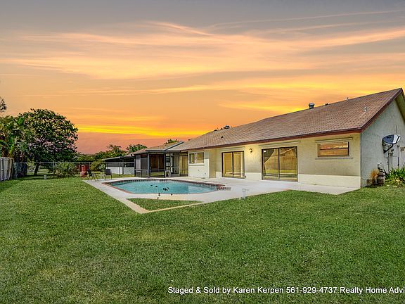 4 bedroom/2 Bath Pool Home located on a huge, oversized corner lot! 2 Car Garage! Vaulted ceilings, tile and laminate through out. Split floor plan. Great backyard for relaxing or entertaining with the large pool, fence in yard, and screened in patio. Sprinkler feeds off lake. American Homes, Southwind Lakes is an amazing community of beautiful homes with an extremely low HOA fee $57/month includes community pool, tennis,basketball, tot lot+ more! Amazing schools! Pet friendly community/all ages/Fha/VA ok! Sold & Staged by Realtor Karen Kerpen with Realty Home Advisors 561-929-4737. I can sell you home too!