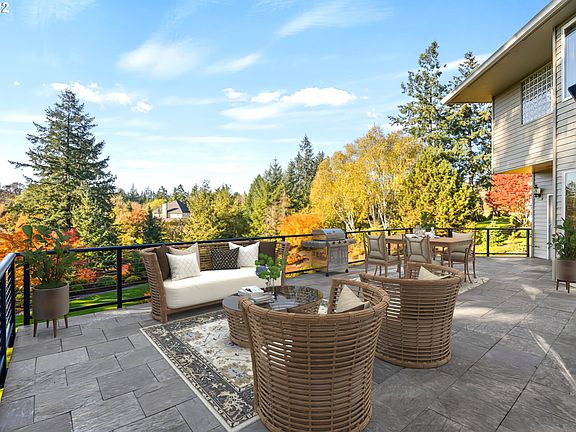 Soak in the vibrant sunset views from elevated entertaining decks surrounded by nature in this exceptionally private retreat w/2 bonus rooms, wonderful natural light & park-like grounds.Soaring ceilings & windows create scale & grace w/main lvl office, plush primary suite & secluded lower lvl multi-gen dwelling w/sitting rm. Welcome guests to sweeping lawns & plenty of room for a pool! Sleek 3-car epoxy grg & so central to Nike/Intel, Progress Ridge, Cooper Mtn trails & celebrated wine country.