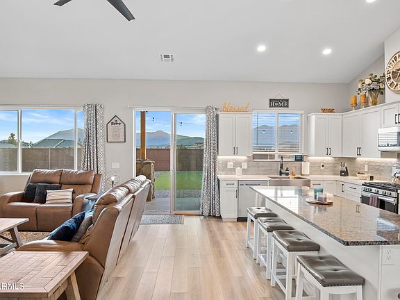 Seemingly endless views of the San Francisco Peaks, accompanied by the serenity of the nearby National Forest! And less than 10 miles from Flagstaff shopping and entertainment! The professionally landscaped yard is a true masterpiece, featuring a built-in natural gas grill, corregated steel fencing, synthetic grass, and a paver walkway leading to a cozy sitting area. Inside, the vaulted ceilings add an airy and spacious feel to the open concept home. The chef's kitchen is highlighted by stainless steel appliances and ample counter space for culinary adventures. The primary bedroom is a retreat within itself featuring an ensuite bathroom with a luxurious soaking tub, large glass panel tiled shower, and walk-in closet. Stay comfortable year-round with a new Rheem central a/c system.