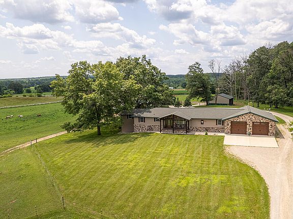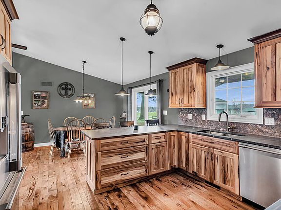Welcome home to your farm oasis! This custom craftsman home with a western flare offers a special touch that is hard to stumble across. The expansive kitchen is accompanied by custom handcrafted hickory cabinets highlighted with unique granite countertops. The open floor plan gives easy access to all parts of the house while offering privacy. Vaulted ceilings in the living areas and master bedroom. The walkout basement is partially finished with a kitchen.