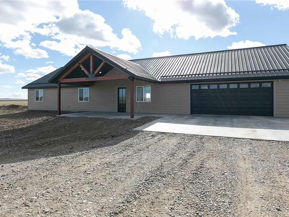Your Montana country lifestyle awaits in this newly constructed one-level home on 1+ acre. Wide open views in all directions, this brand new home offers affordable rural living and plenty of elbow room, all just 20 minutes from city conveniences. Private septic, two 2,200 gallon cistern(s). Room for shops, toys and a quiet, relaxed lifestyle. Oversized garage, maintenance free exterior. Photos are of similar home(s).