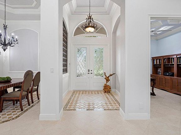 Everything you could possibly want or need is here ! This 5 bedroom, 3 full bath + den home sits on the most beautiful lake front lot in all of Isola Bella. This home is large, light and bright offering a split bedroom floor plan and tons of closet space making this an ideal family home with room to roam and perfect for large family gatherings. Some upgrades include freshly painted interior, applied moldings, coffered ceilings, crown molding, whole house generator , rear accordian shutters and tile throughout . The primary suite is large and has a sitting area with patio access and his & her walk in closets with built ins. The bathroom feels grande and has separate vanities, large shower, spa tub and water closet with bidet . The kitchen has a center island , wall oven and granite counters which overlooks the family room. Sliding doors lead you to a large tiled screened patio that surrounds a beautiful pool and spa area with a summer kitchen overlooking the largest lake front view and tropical landscaping which makes the ideal setting to enjoy the beautiful South Florida weather no matter what time of year it may be.