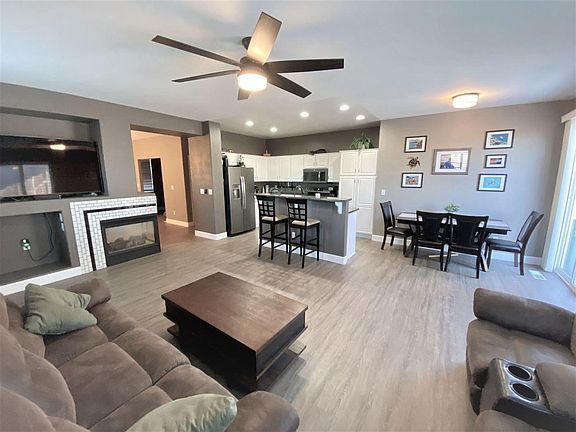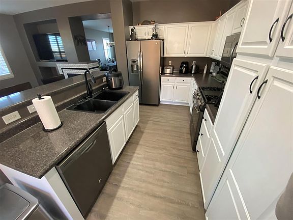 Located at the end of a cul-de-sac with only one neighbor, this home offers privacy and a driveway that offers three parking spaces in addition to the attached 3-car garage. Steps away from a walking trail to enjoy, and the Sky Vista Community offers other walking trails and parks, including a dog park, throughout the community as well. The home has been upgraded with waterproof, engineered vinyl-plank, new stove, and light fixtures. The double-sided fireplace highlights both the living and dining rooms.