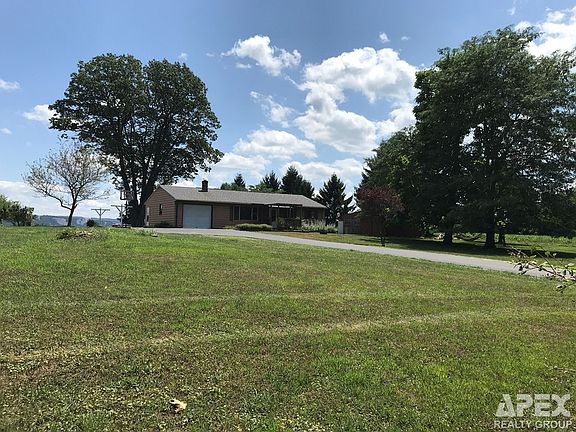 Move in ready ranch home sits on 2 acres with a beautiful view of the valley. 2 bedroom, 1 bath home with a 3rd bedroom on lower level. Large 34x24 shed for your toys. Mature trees surround the property. If you're looking for one story living in the country, then don't miss out on this property. Large firepit for outdoor evenings, room for horses. Property has generator hookup. Just minutes away from 990 acres of State Gamelands.