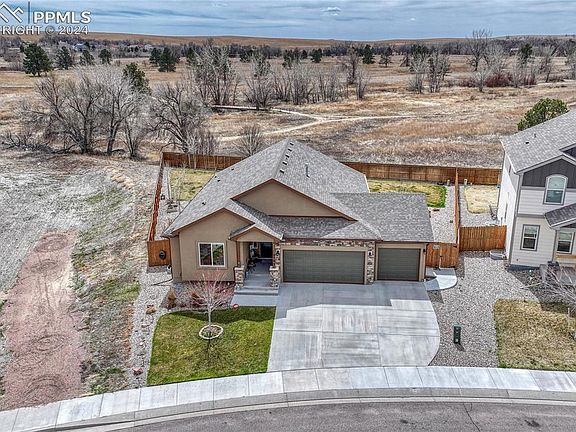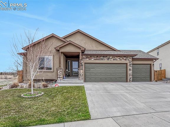 Gorgeous home in Lorson Ranch! This stucco rancher boasts many upgrades and extras! Walk in to main level living with open concept. Amazing floors throughout most of main level give the home a warm feeling. Kitchen with pantry, stone countertops, huge island, eat in area, and stainless steel appliances opens up to the large family room! Walk out to the private backyard with wood deck. This lot is much larger and has much more privacy than much of the neighborhood! Master retreat with 5 piece bathroom and walk in closet help you sleep peacefully after a long day. Find 2 more bedrooms and full bath on the main for guests or an office. 3 car garage with special coated floor. TV and bracket in the garage included! Behind the garage is a storage shed for all your gardening tools. Full basement as well! Walk into a large family room with a side bonus area for home theater or work out area. Find 2 more bedrooms and full bath around the corner for any guests! The mechanical room contains plenty of storage and the sump pump. Other extra features: pergola on deck, water softener, reverse osmosis system, and coated floor in the garage! This home is move-in ready and a must see!