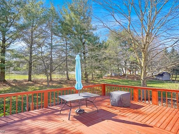 Step into the welcoming foyer with gleaming wood flooring, a coat closet and an updated half bath with a beautiful vanity. The kitchen opens to the dinette and great room - perfect for entertaining or family space. It comes fully applianced and offers Corian counters, a large pantry and a broom closet. The dinette features built-ins and a sliding door to the sun room. The family room will be a favorite! It features beamed ceilings, an alcove with built-ins and a gorgeous stone fireplace with gas starter. There's a formal dining room and a formal living room/office. The first floor laundry room has a built-in ironing board, cabinets, a sink and outdoor access, the laundry room entry door was recently replaced, this year. Upstairs, the master suite has 2 closets, a window seat and a private full bath. The lower level has great storage, and high ceilings for finishing potential. There's a 2-car attached garage with extra storage space. Relax in the private backyard complete with a shed