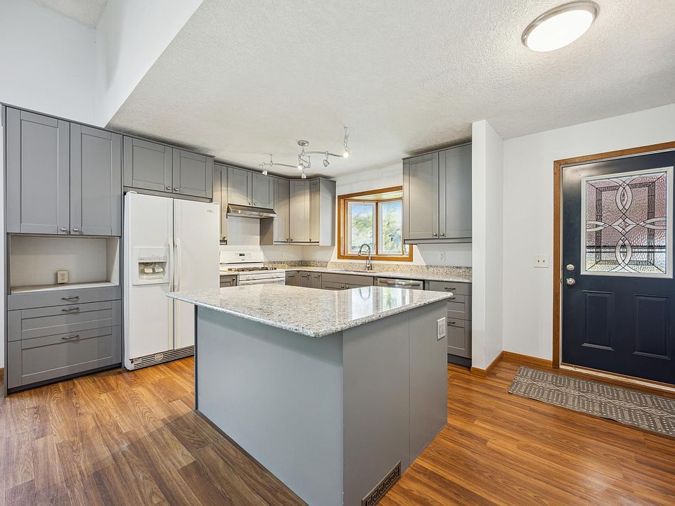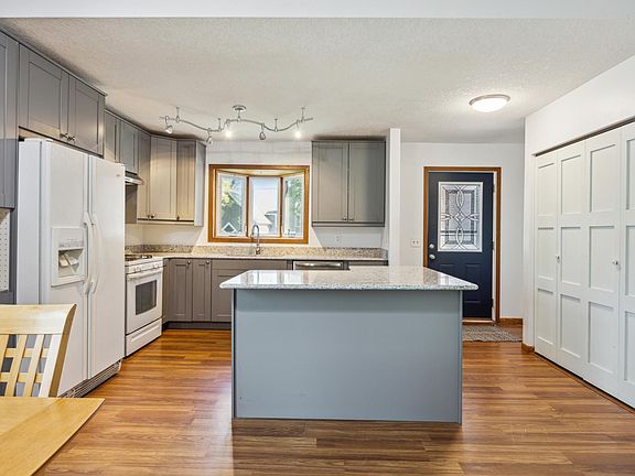 This home needs a little love and is priced for you to make it your own. Some big items are already complete that include remodeled kitchen, roof, siding and all new flooring. Located in a quaint neighborhood that is convenient to Hwy 10, close to shopping and restaurants. Kitchen features quartz countertops, soft close cabinets, stainless steel dishwasher and flooring. Open concept floorplan allows for spacious living. Beautiful brick fireplace in the upper living room with floating shelving. New carpet 2025, roof and siding 2022. Fully fenced in backyard backs up to Parkside Park with walking trails. Move in and start building equity.
