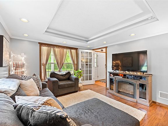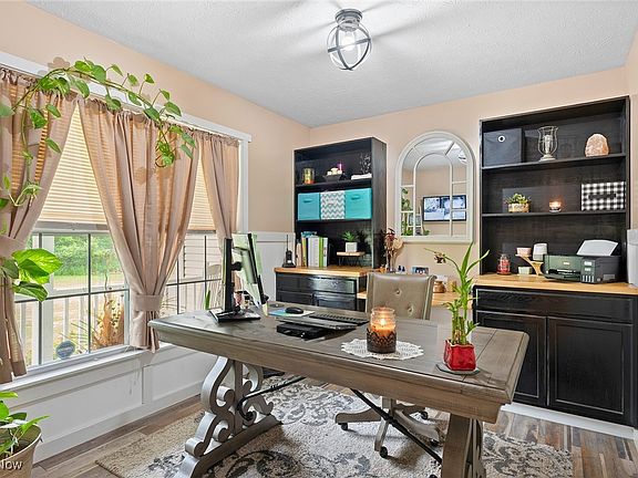 Step into a welcoming foyer flanked by a dedicated home office and formal living room. The spacious kitchen seamlessly flows into a sunken family room featuring vaulted ceilings with exposed wood beams and a cozy wood-burning fireplace. Just off the kitchen, step outside to the deck—perfect for entertaining—complete with a hot tub (new in 2023) and an above-ground pool with a new propane heater installed in 2024. NEW ROOF in 2022. NEW FURNACE and A/C in 2024.