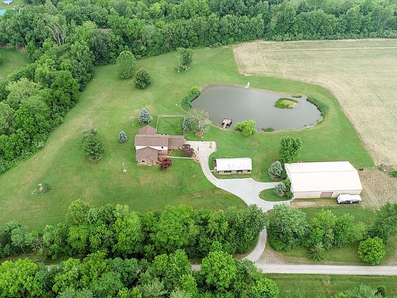 Open House 6/29 6-7 PM. Meticulously maintained home on over 27 acres of treelined land. Situated atop a hill, enjoy a constant breeze and local wildlife during the day and the sunset at night. Residence features approx 3,539 sq ft of finished space. 1st fl primary suite, large Great Room with vaulted ceiling, and covered back patio. Included on 27 acres is a stocked pond, pole barn, and workshop. Approx 13 acres of farmland is leased to local farmers.