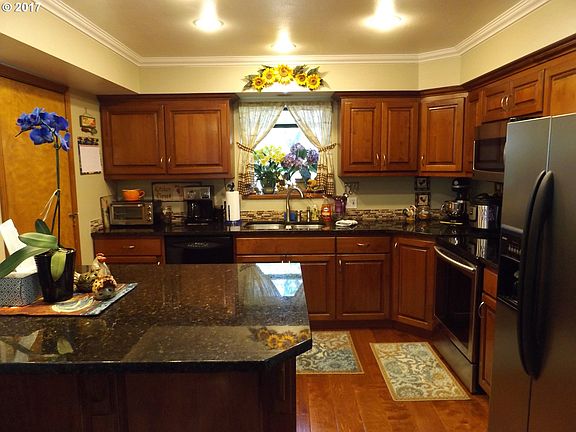 Lovely home featuring three bedrooms, two baths, one level. Features high end kitchen, upgraded bathrooms, large fenced level yard. Wood stove and forest like views from the living room. Relax in the over sized back yard. Enclosed RV parking.Granite counters, soft close drawers, stainless appliances, and custom breakfast bar. Garden window accents kitchen. Two car garage with lots of storage is attached with entry into the kitchen.