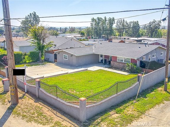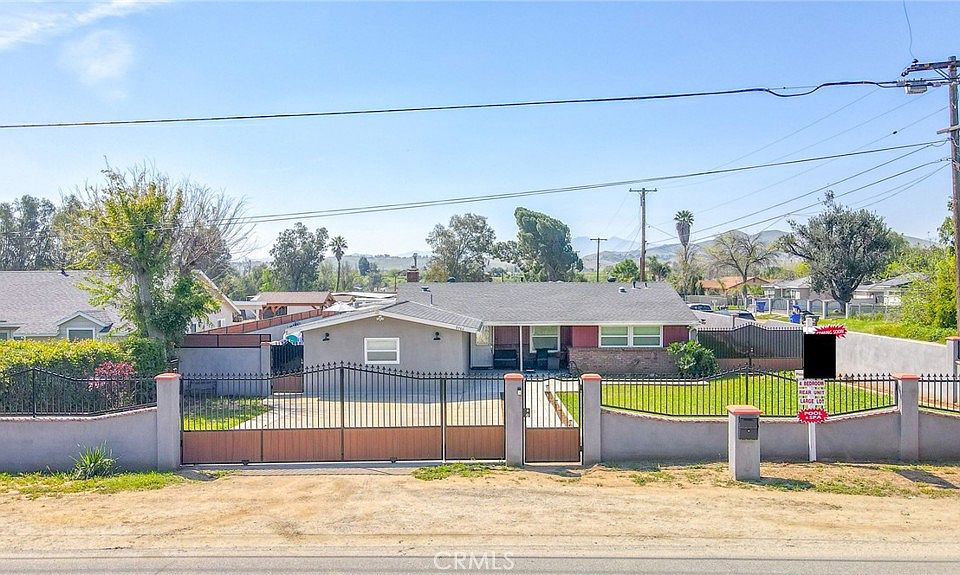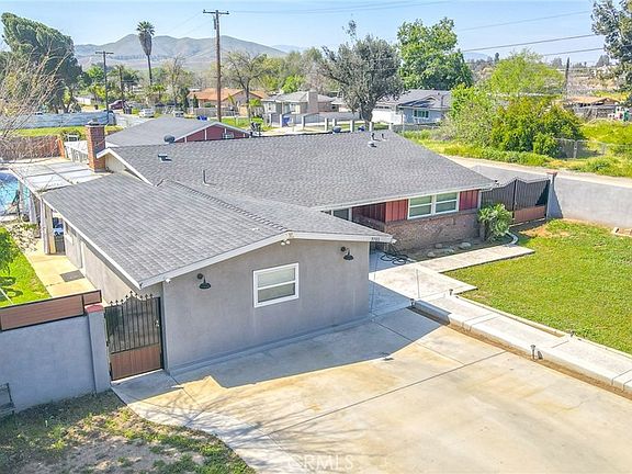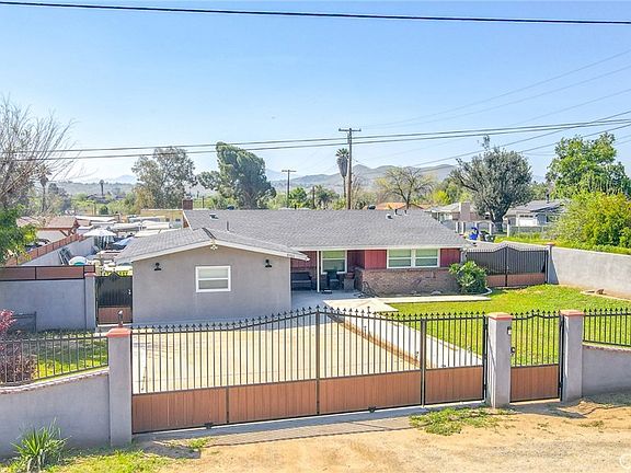 Back on the Market!!! DO NOT MISS ON AN AMAZING OPPORTUNITY TO OWN THIS ONE-OF-A-KIND PROPERTY IN JURUPA VALLEY. This corner lot pool home will definitely check off all your boxes on your checklist. The exterior features a new block wall that wraps the property, new custom electric driveway, entry gate , concrete entry and an owner owned 16 panel solar system. Home features 4 bedrooms, 2 baths (1 master-bath), an updated stone countertop kitchen which overlooks family room with fireplace and entertainer's backyard and pool, new flooring, newer HVAC, new paint, step-down den, laundry room, dining room off kitchen and recessed lighting throughout. The outdoor entertainment area has many zones to entertain a small intimate group to a large get together. The star of the backyard is a new oversized 17'x40' saltwater pool with an elevated 8 seat spa. The upgraded pool features waterfalls, soft Pebble Tec plaster, lounge area and a shallow toddler area (Baja shelf). While enjoying the pool, guest can enjoy other areas as the built-in BBQ entertainment area with a top-of-the-line BLAZE Grill with rotisserie, fridge, glass countertop firepit, undercounter fridge and a flat screen TV. If you prefer to lounge and watch TV, there is a large wrap around covered patio with one area of the patio perfect for watching games or movies or an occasional karaoke competition. A surprise bonus is a potential ADU which is a 625 ft Sqft attached garage area that has been finished as a 3-bedroom 1 bath plus pool bath. Beyond the entertainment area you will find a large secondary concrete parking area that can fit 10 or more cars, a 10x20 carport and fruit tree garden. A wooden fence separates the second half of the lot with an interior gate entrance as well as a street side entrance off of Rutile Street. There is Unlimited potential for this area. The area includes a large 800sqft (20x40) workshop, an additional 225 sqft (15x15) storage room and a large flat area which could be used for animal, agriculture, or parking small to oversized vehicles. Lots to the imagination for this separately street accessible space. Hurry this unique property will not last.