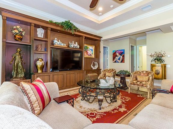 Don't wait to tour this lovely sought after Julia model sitting on a cul-de-sac street. Special features include 2 air conditioners, porcelain tiles on the diagonal, crown molding throughout. Upgraded kit. cabinets with stainless steel appliances including a 30 cubic ft. refrigerator, range with convection & traditional ovens & custom center island. Upgraded washer & dryer. Built-in wall units in great room & den (4th Bedroom). Bonus room with large built-in wall unit great for storage or the hobbyist. Bathrooms feature granite counters & mirrors to the ceiling. All window treatment stay. Garage and Bonus rooms extended 4 feet. Huge Patio looks out upon a beautifully landscaped yard. Front hall chandelier & refrigerator in garage do not convey. MOTIVATED OWNER