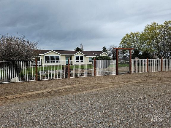 Don't miss this well maintained acreage in Hammett. New seeding alfalfa, pasture and a beautiful 2900 sq ft home. Custom Guerdon with vaulted ceilings, oversized new vinyl windows, Pergo floors, new gas down-draft gas cooktop installed, gas fireplace, oversized hallways. King Hill Water shares, underground utilities, frost free hydrants. fruit trees, covered patio, garden shed. New painted exteriors and new rain gutters. Carpet cleaned and stretched. Great views of the mountains and valley, close to Snake River. Great rural location. Any and all types of livestock are allowed. Pastures for horses or cattle. Property has a 2,000 sq foot garden area, including established strawberries, and herb production, fruit trees, almond trees, cherry, apple, apricot, nectarine, peach, pear and plum. Two grass pastures for animals and a new seeding of alfalfa.