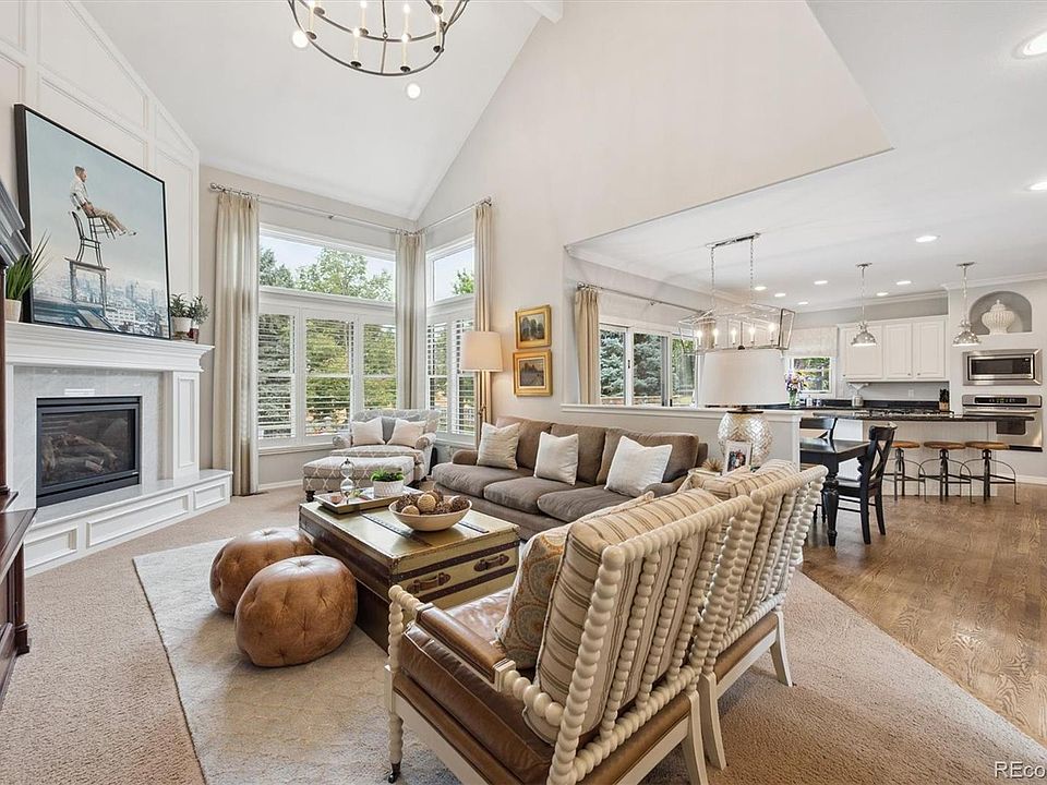 Welcome to this truly exceptional semi-custom home, ideally situated near the Highlands Ranch Mansion. Perfectly positioned at the end of a cul-de-sac and backing to permanent open space. A stunning custom addition has expanded the home by nearly 400 sq. ft., creating a versatile layout that includes handbuilt cabinetry and soundproof executive office, a relocated spa-inspired primary bathroom w/ marble tile, dual walk-in closets, a second laundry, and a bonus exercise room in the basement. Inside, an abundance of natural light fills the open floor plan highlighted by a two-story family room, 2 fireplaces, and timeless wainscoting millwork and new lighting throughout. The gourmet kitchen features classic white 42" cabinetry and is complemented by a walk-in pantry and a dedicated mudroom with built-in lockers and a convenient main-floor laundry. Upstairs, retreat to the primary suite—a private sanctuary with a luxurious bathroom boasting an oversized shower, private deck, and exceptional storage. Two additional bedrooms share an updated Jack-and-Jill bath, while the fourth bedroom enjoys its own remodeled en-suite. The finished basement is designed for entertaining. With a custom-built entertainment area, kitchenette with an oversized quartz island, and expansive recreation space, it’s perfect for movie nights and game days. A private guest bedroom and ¾ bath, oversized exercise room w/ drinking fountain adds to the amenities this home offer. Step outside and discover your park-like backyard oasis. The oversized deck, built-in gas fireplace, outdoor kitchen w/ BBQ, putting green, and basketball court make this the ultimate space for gatherings large or small. Additional upgrades include electric car charger and stone tile roof! Enjoy close access to the Highlands Ranch/DougCo Rec Centers and trail system offering over 100 miles of hiking and biking paths just outside your door. If you’ve been searching for a rare property that offers it all, your search ends here!