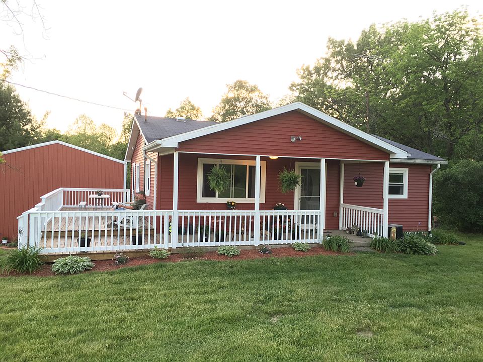 3 BR 1 bath Ranch over full, partially finished walk out basement. Newly remodeled eat in kitchen. Detached 24x30 pole barn with electricity and concrete floor, 2 post car lift. Lean to off side. 8x10 metal shed and older wood barn on property. Large 32x26 all steel truss building that is currently being used to house boats. Land is partially wooded with creek running through it. 10x30 deck connects to the front covered porch. Wildlife abounds, beautifully landscaped and well cared for with new siding, doors and windows in 2017. 2 separate parcels to equal the 15 acres. House and 2.5 acres on one tract and 12+ acres on 2nd tract.