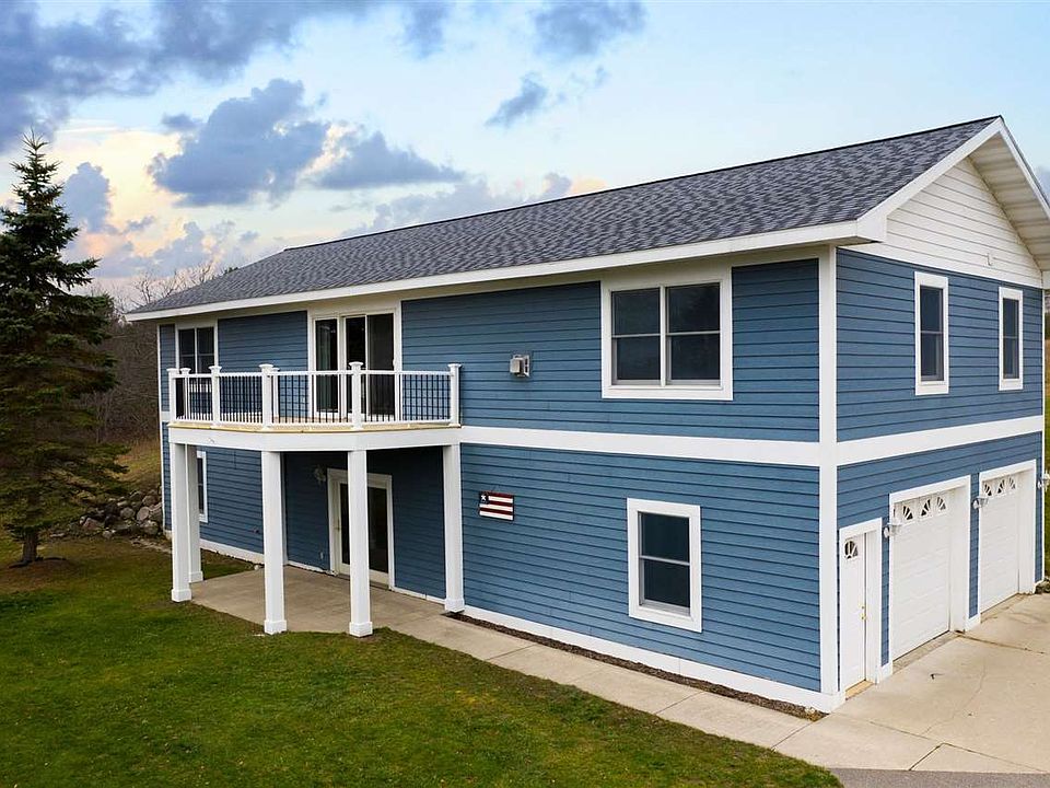 A great opportunity for a growing family just minutes from downtown Boyne City This lovely home has great curb appeal and features 3 private acres. This expansive 4 bedroom, 3 bath home is in excellent condition from top-to-bottom. The lower level consists of a large family room, bathroom, bedroom, an additional room office/bedroom if needed. The home also has two fireplaces, one in the lower level and one on the mail level. The main level is warm and welcoming with hardwood floors and two sliding doors, one leading to a brand new balcony. The open floorplan connects the kitchen, dining, second living area, and a spacious master bedroom with a completely remodeled master bathroom. The property adjoins Shangri-la-park of 5 acres, assuring additional privacy and a great area for sledding, playing, walking, or mountain biking.