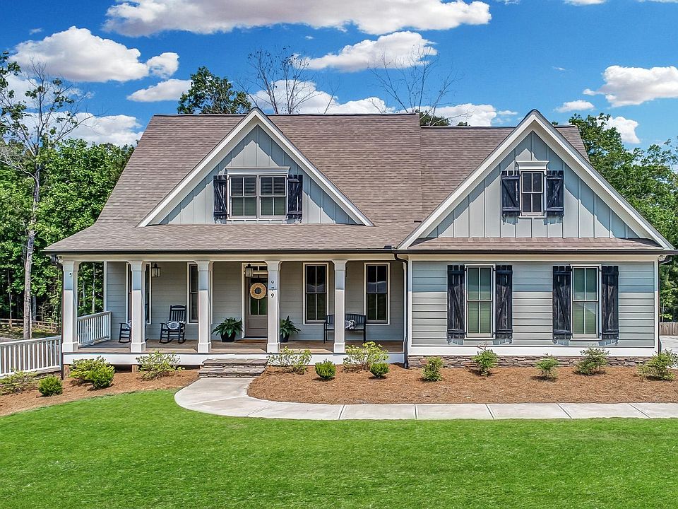 This home is practically brand new - just built in 2021! It has been immaculately kept and sits on just over an acre with a large, flat fenced back yard. It features the owner's suite on the main level, three bedrooms upstairs, quartz countertops throughout, hardwood floors, stylish tile and tile surrounds in all bathrooms, a screened back porch with a grilling deck, tons of natural light throughout, beautiful curb appeal, a front porch perfect for rocking chairs, and so much more. The basement has been finished to include a bathroom with a walk in shower, a family/media room, and two additional rooms perfect for bedroom use or office space. This location offers space and rural living while still providing quick access to multiple golf courses, Lake Arrowhead, Lake Allatoona, healthcare, grocery stores and shopping. There are covenants in place, but NO HOA fees to worry about! Homes in phase 2 of Sawyers Farm are selling in the $900's. *Check out the virtual tour!*