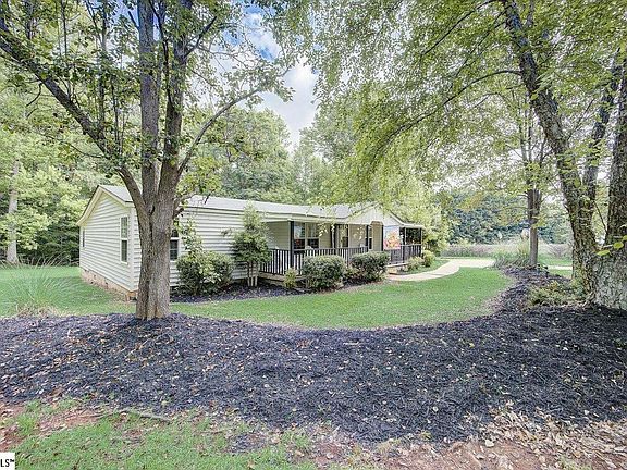 BACK ON THE MARKET -- Buyer financing fell through -- Talk about a great location!! WOW!! This feels like country living however it's minutes from most things that you will need, like shopping, restaurants anything at all. Only 13 minutes to downtown Greer or Travelers Rest and just 20ish minutes to downtown Greenville and Lake Robinson is just minutes away. The home sits on over 2 very private acres!! Lovely 3 bedroom, 2 bath de-titled doublewide with additional space built on. The home features a split floor plan, a rocking chair front porch, a huge deck on the back, brick patio and a 3 car garage. You absolutely must come and see this home for yourself.