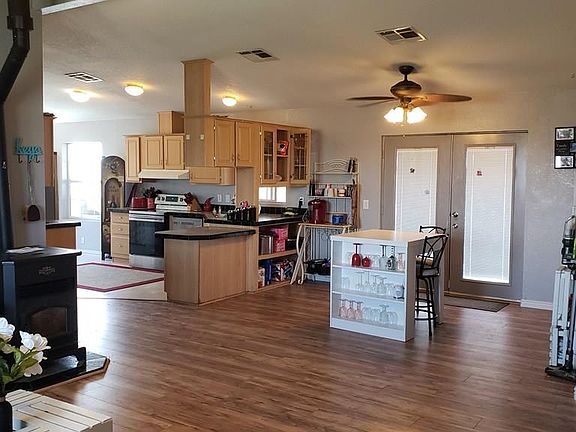 Open floor plan with cathedral ceilings and lots of windows! 4 bedrooms with split floor plan. Large master bedroom with master bath that includes corner tub, walk in shower. Big kitchen with breakfast nook and dining room too. Pellet stove in the living room that will heat your entire home and 2 swamp coolers to keep you cool. 1.38 acres with 2 car detached garage, large covered patio overlooking the landscaped yard, privacy fence with plenty of room to still have horses or storage for your toys. New solar unit installed provides all your electricity.