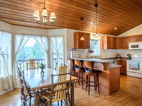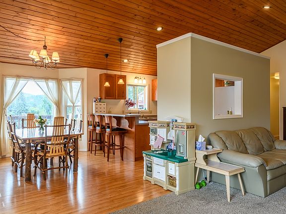 Location, Location, Location. Quiet neighborhood only a short walking distance to downtown Bigfork, less than 2 miles to Flathead Lake, & near the Swan River Nature Trail (Wild Mile section of Swan River can be heard in the evenings from the deck). Main level hosts the kitchen, living room, master bed/bath, guest bath & 2 other bedrooms while the basement boasts an additional two bedrooms &full bathroom. Would make an excellent short-term rental or home for anyone. Wake up to sunrises over the forest service land. Enjoy the vaulted wood ceiling, large kitchen, oversized master bedroom with vaulted ceiling, and 3 FULL bathrooms. New roof in 2022 (R60 insulation), new water heater, carpet replaced in 2021. You will love the big Apple Tree out front, and raspberry patch and rhubarb in the back. Extra-large driveway. Cedar fenced yard. Whether looking for an investment or your next home–this Bigfork home is for you! Contact Chase Giacomo at 406-314-8195, or your real estate professional.