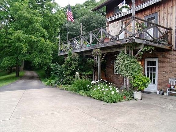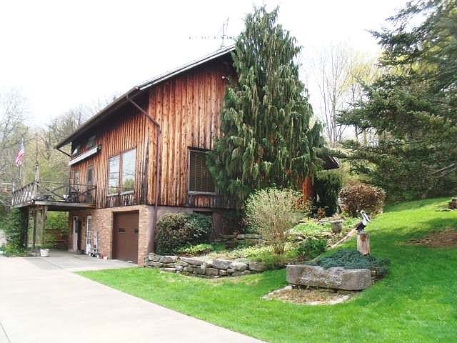 Looking for your own private getaway? This home is situated on just shy of 3 acres with amazing views, mature landscaping and many rustic characteristics. The moment you walk in this home the views draw you in. Amenities open concept living and dining room, both featuring hardwood flooring, updated flooring through the rest of the house, main floor laundry, bath and master bedroom. Two kitchens (one on the main level and one in the finished lower level), the ultimate man cave downstairs, integral one stall garage, loft and an upstairs bedroom that could easily be converted to two bedrooms for the growing family. There is an additional pole building, another outbuilding for gardening or storage and did I mention the views?!? Hickory siding, FREE lease gas with natural gas back up, central air, 200 amp electric service, zoned heating and hot water are just a few of the added benefits of this home.