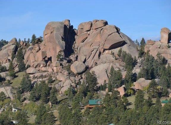 The Treasure at Dog Head is a reflection of a remarkable setting contrasted against a creative human design. The cabin's backdrop is a jaw-dropping tumble of granite carved into the "Dog Head". Log Cabin within a Remarkable Setting ~ Nestled Below Massive Granite Rock Formations (AKA Dog Head Open Space) ~ Mountain & Valley Views ~ Fully Turn-Key (incl furniture, furnishings, artwork, wall décor, nic-nacks, dishes, cookware, linens, etc) ~ Main Level Living ~ Spacious Loft ~ Walk-out Basement ~ 3-Sides Wrap Around Deck ~ Hot Tub ~ Detached, Oversized Garage w/ 200 SF heated, finished space (great flex space for studio, exercise, other), Storage Shed, Tall Pine & Scattered Aspen ~ Paved Driveway