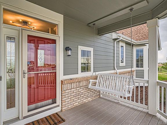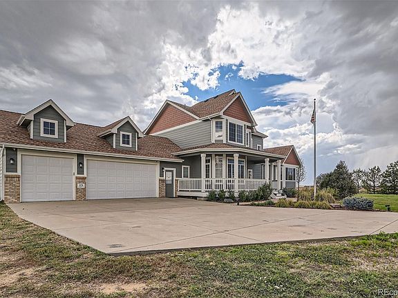 Beautiful 2 story home in Watkins Farm. 2.41 Fenced Acres with gated entry and extended concrete driveway. Oversized 3 car garage and additional space for RV garage/parking. Premium Culdesac lot that backs to open space with AMAZING mountain views! Maintenance Free covered Trex porch. Main floor master with gorgeous 5 piece bath, jetted tub and remote Levelor Shades. 4' Hickory Plank Floors with Designer upgrades throughout. Built in speaker/surround sound in family room. Huge unfinished basement to finish to your liking. Back up generator and water filtration system. Country living with short commute to DIA, AFB, Southlands or Downtown.