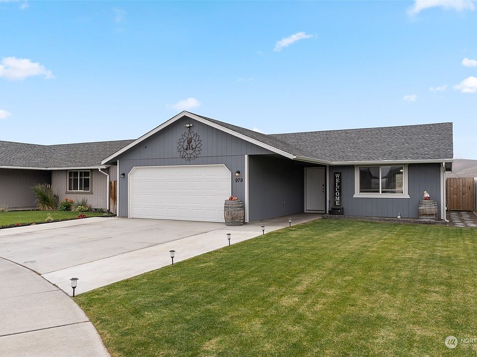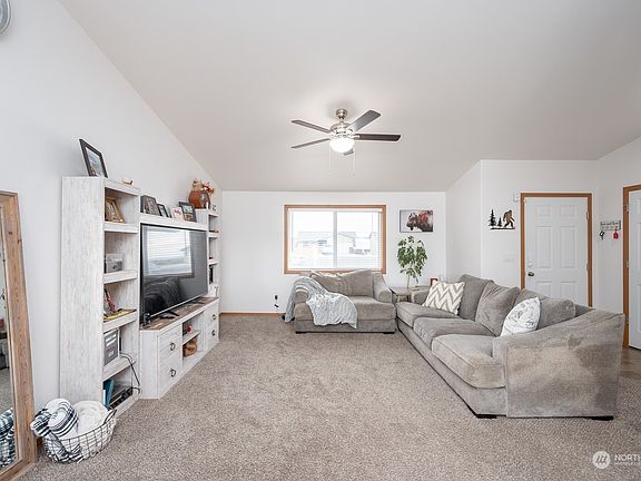 Situated on a cul-da-sac this clean and tidy modern 3 bedroom 1.75 bath home features vaulted ceilings in the living room and large dining space, the kitchen has island and sliding glass door to the oversized patio. Private and fully fenced yard with extra parking and a storage shed. This attached 2 car garage is finished and insulated. Primary suite has walk in closet and en suite bathroom. This is move in ready.