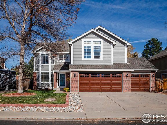 Charming 5-bedroom, 4-bathroom home in Broomfield's sought-after Ridgeview Heights neighborhood, zoned for BVSD schools. This well-maintained property offers spacious living areas, including a cozy family room with a fireplace, a formal dining room, and an open kitchen with ample cabinetry and countertop space. The main level features a private office, ideal for working from home, and a 3-car garage with a 220V electric box, perfect for a workshop or EV charging. Gleaming hardwood floors and new carpet upstairs provide a fresh touch. The primary bedroom includes a walk-in closet and en-suite bath, while three additional bedrooms offer flexibility for family or guests. A convenient laundry room completes the upper level. The fully finished basement adds a fifth bedroom, full bathroom, and a large recreation room, plus a versatile flex space for a gym, office, or media room. The serene backyard boasts mature trees, a patio for outdoor dining, and ample space for gardening or play, plus a shed for extra storage. Recent updates include a newer roof (2018) and water heater (2019). Close to open space, parks and trails, with an easy commute to Denver, Boulder, and Louisville.