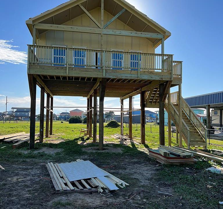 MUST SEE NEW CONSTRUCTION BEAUTY IN THE HEART OF CRYSTAL BEACH! This brand new 1,055 SF beach home has 2 bedrooms, 2 bathrooms, high vaulted ceilings & an added bonus of a loft. It will have a partial water view from the 10' deep front deck, a tall and deep garage, a 1st floor enclosed beach shower and white quartz countertops. Brand new appliances are included: refrigerator, dishwasher & stove. Interior finishes have a custom look with weathered oak color wood flooring, a shiplap accent wall in the living room, tile shower/bathtub walls, interior wall paint color is Light French Grey, interior accent shiplap wall is Hale Navy, exterior house color is Hale Navy. Measurements and Floor Plans are attached to the listing. This will make the perfect weekend getaway as a secondary &/or investment home or a primary residence.