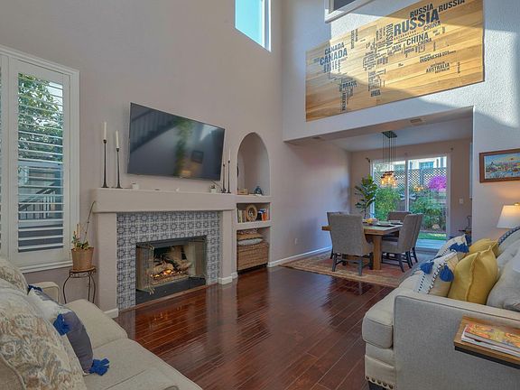 Beautiful move-in ready home in desirable neighborhood. The bright living room welcomes you with high ceilings, and gorgeous tiled fireplace. Formal dining area with sliding door access to the backyard. The backyard has a patio area decorated with pavers, floral bushes and fruit trees. The kitchen has granite counter tops, subway tile backsplash, plantation shutters, pantry and stainless steel appliances. Two ground floor bedrooms and full bath for your convenience. Accent tiles found throughout, giving the stairway a unique esthetic. Large master bedroom with vaulted ceilings, ceiling fan, bath with granite counter tops, shiplap on vanity wall and in walk-in closet. Finished garage with epoxy floors. Located near walking trails, shopping center, fitness center, hospital and more.