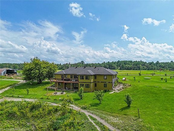 Welcome to your ultimate family dream home! Discover this stunning 164 acre farm (100 acres tiled, remaining land comprised of trees with trails throughout, and paddocks for horses and cattle), You will find five bedrooms on the main level, another two with option for three on the lower level, and 2+1 Bathrooms, you will enjoy 5000 ft. of beautifully designed living area, providing ample room for relaxation and entertainment. Located less than an hour between North Bay and Sudbury, This home is within a five minute drive to the lovely town of Sturgeon Falls. This means you can enjoy the tranquility of country living while still having quick access to everything you need, including hospitals, grocery stores, schools, an array of restaurants, community complex with ice pad and indoor pool, You are also within a 5 minute drive to Lake Nipissing and public boat launch. This location provides the opportunity for you to create cherished memories boating, fishing in the summer and sledding and ice fishing in the colder months, the outdoor recreation is endless. This home is perfect for families and those seeking convenience without sacrificing space and comfort. The lower level boasts a walkout design making it easy to access the outdoors, and is perfect for gatherings and entertaining. Other property highlights include forced air propane furnace, Central air, and with radiant heat downstairs will ensure a cozy atmosphere throughout the year. The lower level is plumbed in and ready for a full kitchen, offering the potential for multigenerational families, guest suite, or rental income. This property is a rare gem that combines Farming with spacious living, modern amenities, in a prime location! There are too many highlights to mention so schedule a viewing today and don't miss out on this exceptional opportunity.