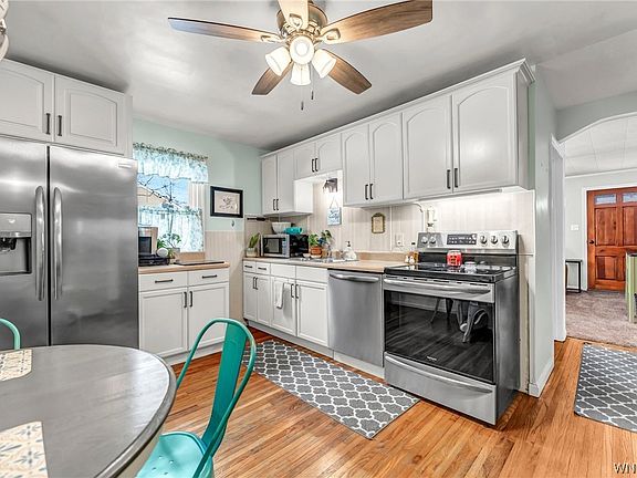 life proof vinyl flooring and has plenty of storage for your needs. The eat in kitchen has been remodeled with extra cabinetry, stainless steel appliances, light fixtures, new hardware, and fresh paint. Both bedrooms have ample closet space new light fixtures and original hardwood flooring. The bathroom has been updated with a new toilet, new cabinetry and fresh paint. Additional updates on this home include Hotwater tank and some vinyl windows. Enjoy relaxing in your park like backyard while watching all kinds of wildlife from your covered patio. This quaint and cozy home is ready for its new owner!! Offers due Tuesday 2/20 at 3pm.