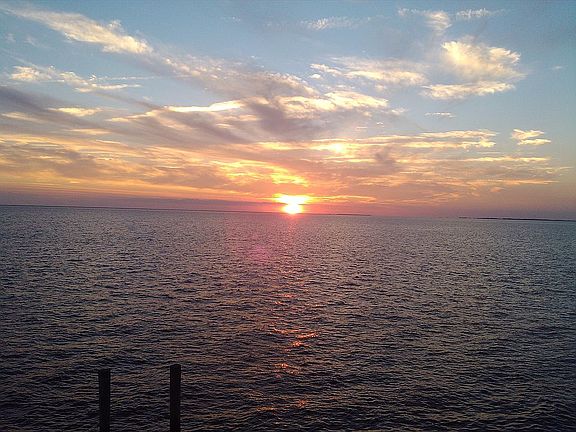 ENDLESS SUNSET WATERVIEWS YOU WON'T BELIEVE! Surrounded by over 100 acres of pristine nature preserve and 1.5mi. of sandy beach.This solidly constructed bayfront home has geo thermal heating and cooling, new siding, new appliances, huge wrap around deck, garage and fully enclosed storage area on first floor. Property is completely rip rapped for protection, deep water pier permit.