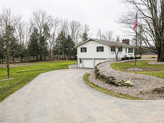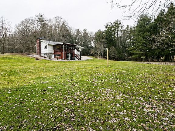 This 3-bedroom country ranch on 1.61 acres blends modern comforts with rural charm. Updated interiors include a custom kitchen designed by Fahy Kitchens, with beautiful cabinetry, a large island, SS appliances, and quartz countertops. The kitchen flows to the living area, highlighted by a stone fireplace and lots of natural light. The basement level offers a heated bonus room and full bath, perfect for guests or a home office. The expansive screen porch seamlessly merges indoor and outdoor living, the perfect spot for relaxation and entertainment. Surrounded by nature, this property provides a serene atmosphere with ample outdoor space for various activities. Take a stroll across the foot bridge over the brook to see the large workshop/studio and imagine the possibilities. 2-stall garage under house. Chickens currently housed in part of workshop. Seller has set a deadline for highest and best offers by 8pm Tues 3/12/24