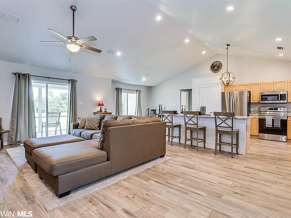 CHARMING BRICK HOME IN PREMIERE FOLEY COMMUNITY - GLENLAKES! Stunning renovation with UPGRADES galore - NEW PAINT & TILE PLANK FLOORING throughout open concept living, dining & kitchen area complete with CATHEDRAL CEILINGS giving the home a spacious feeling from the moment you walk in the front door. Gleaming GRANITE COUNTERTOPS cover the kitchen & BREAKFAST BAR + NEW STAINLESS STEEL APPLIANCES & an abundance of cabinet storage. DINING NOOK just off living/kitchen area. SPLIT BEDROOM FLOORPLAN - master bedroom with ensuite bathroom that is handicap accessible w/ WALK-IN SAUNA TUB & separate shower. Full-sized laundry room with BARN DOOR & CUSTOM BUILT FOLDING STATION. Massive SCREENED-IN PORCH overlooks a grand back yard that contains plenty of room to put in a pool. Side-facing 2 CAR GARAGE too. Well-maintained community is located convenient to the Baldwin Beach Express & County Road 20 making your commute into the city center & to beautiful GULF FRONT BEACHES a BREEZE! Easy to show with brief notice and priced to SELL.