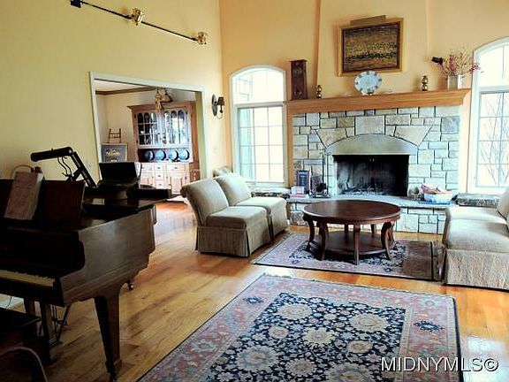 Inspiring! Gorgeous contemporary with impressive entrance way, beautiful LR w/stone fireplace, formal dining room, new kitchen w/modern & country mix. FR & Sun room, large master w/new wonderful bath. 1.4 acres w/stunning views (more land available), 2 stall attached garage & pole barn snuggled into a partly wooded setting.