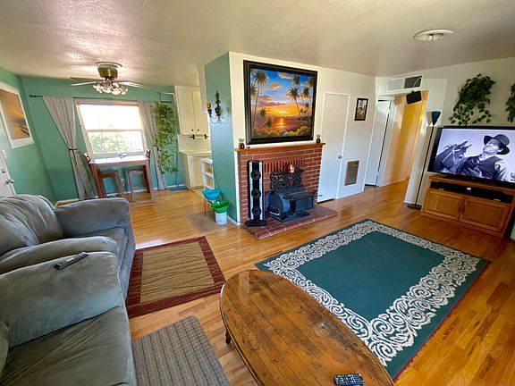 Move in ready! Hard wood floors throughout home. Central A/C. Dining area. Newer appliances. Recent paint. Entire property is gated and fenced. Attached 2 car garage. Very large shop in back with huge bay doors, and lots of built-in shelving. There is quite a bit of property behind the shop that would be perfect for a garden, or farm animals. Driveway fully paved in front, and to shop. Massive Boat and RV parking.