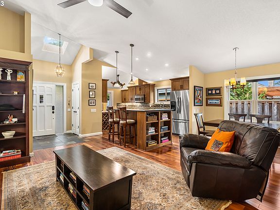 - Features: Dishwasher, Eat Bar, Great Room, Hardwood Floors, Island, Microwave, Updated Remodeled, Free Standing Range, Free Standing Refrigerator, Vaulted Ceiling