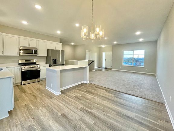 COMPLETED NEW CONSTRUCTION ready for quick move-in! One Level Single Family Home on a Walkout Homesite. The Pine floor plan features an Open Concept Main Living. Main level offers 3 Bedrooms, 2 Bathrooms, Kitchen, Dining Room, Great Room, Laundry Room, Mudroom, and 9' Ceilings. Kitchen features a center island & window with backyard views. Primary Suite highlights include a private bath & walk-in closet. Unfinished Walkout Lower Level is ready for future finish including future family room, 4th & 5th bedrooms, & 3rd bathroom. Front elevation features a spacious concrete front porch & stone accents. Sod, irrigation system, & front landscaping included. Some photos may not depict actual plan, materials, & finishes may vary. All measurements are approximate.