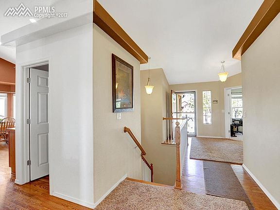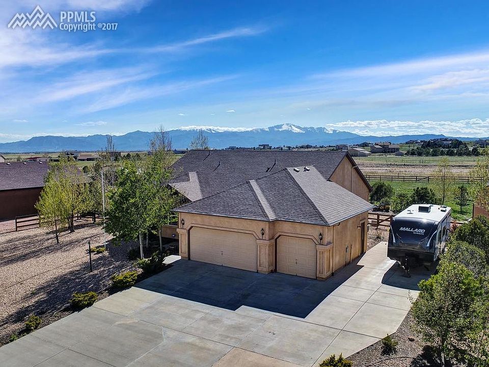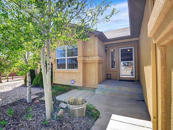 VIEWS, VIEWS, VIEWS AND MORE VIEWS! Open and bright ranch home on a one acre lot backing to open space with unobstructed sweeping Pikes Peak & mountain views. Vaulted ceilings on entire main level. Kitchen is equipped with island and eating space, with raised panel oak cabinets, there is also a pantry for many extras. Enjoy the view from master bedroom or relax in spa master bath with soaking tub & extra large walk in shower, there are 2 additional bedrooms on main level with adjoining Jack & Jill bath. Downstairs entertain in large open area where there is a wet bar, seating around the gas fireplace, or enjoy gaming activities in rec area. There are also 2 more bedrooms for growing family or special guests. Enjoy the outdoors with family and friends surrounded by beautiful rock water feature with water fall plus 2nd whiskey barrel water feature. Sit around the propane fueled outdoor gas log fireplace. With just over an acre there is plenty of room for family activities.