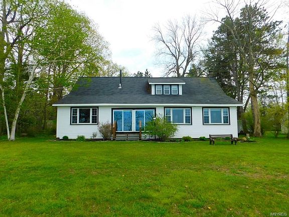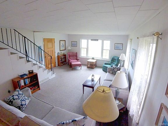Oh, the memories you can make with this home on the Lake. Incredible sunsets, campfires, games, volleyball and croquet on front lawn facing lake, backyard with fire pit. Inside has many options including "7 dwarfs bedroom", spacious living room with window seats and wood burning fireplace, 2 sun porches, 2 full baths and 2 half baths, extra kitchen or in-law apartment. You can walk into Evangola State Park at the end of Shorecliff, with swings, basketball courts and more.