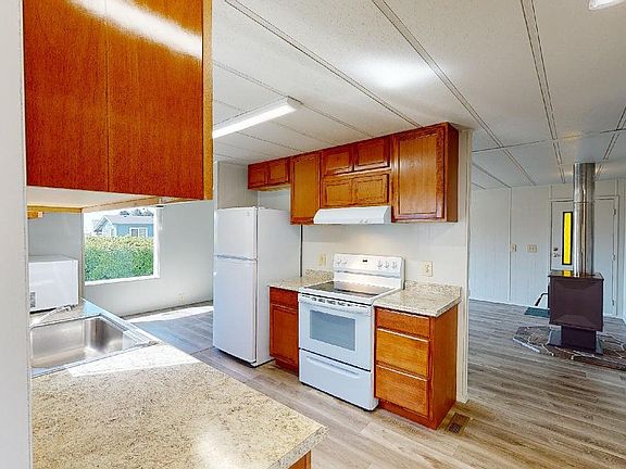 Introducing a fantastic coastal property, this charming manufactured home on its own land is located within walking distance of the famous Port of Brookings-Harbor. With easy access to local beaches, delicious restaurants, and various entertainment options, this coastal gem is perfect for those who enjoy the best that seaside living offers.The home underwent an extensive remodel in 2021, boasting a fresh, modern feel throughout. The updated kitchen features new cabinets and appliances, while the easy-to-maintain laminate flooring and stylish tile in the bathroom further enhance the living spaces. The dual pane windows, blinds, and ceiling fans ensure comfort and energy efficiency all year round.The property also includes a massive 24x40 shop with a spacious loft and convenient half bath, providing ample room for your boat, RV, storage, hobbies, or a potential workspace. Outdoor living is a breeze with two covered porches and a deck, perfect for relaxing or entertaining friends and family. The circular driveway provides easy access and ample parking for residents and guests.With its prime location, new updates, and unique features, this manufactured home on land is a fantastic coastal retreat waiting to welcome you home. Make this your part-time or full-time coastal retreat just minutes from Sporthaven Beach! This is a cash-only sale and may qualify for a non-conforming loan. Call for details and ask to see the 3D tour inside!