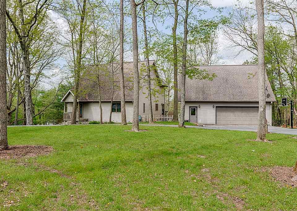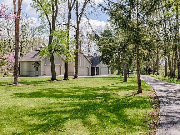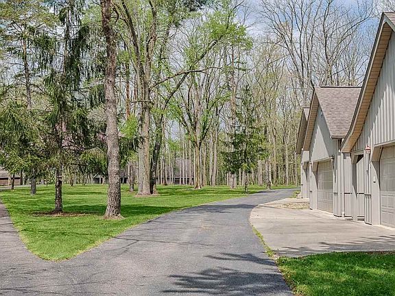 Rare Opportunity !! Beautiful year round or weekend Lake Front home on Lukens Lake. 212' of lake front. The lake is around 46 acres in size with an average depth is around 22' Max depth is around 42'. No Ski lake & no public access. There is a private owned pay boat ramp across the lake for small boats at a small fee, but the lake is very private and used mostly by residents. Beautiful 3 level home with around 2,450 sq ft of living area. 2 bedrooms and 3 baths, but could easily have a 3rd bedroom in the lower level. Large rear deck overlooking the lake from high above. Large custom eat in kitchen with island and quartz counter tops. Newer appliance can all remain. Field stone gas log fireplace in the lower level family room. Natural gas 90+ furnace and central air. 29.5' x 30.5' detached 3 car garage with finished interior. 1320 sq ft Morton detached garage/workshop fully finished and heated. Plus an additional 24' x 24' Morton Detached garage which is also fully finished on the interior. 20' x 24' pavilion down by the lake. Nice newer pier aso remains. Paved circle drive through the park like setting to the lake home.
